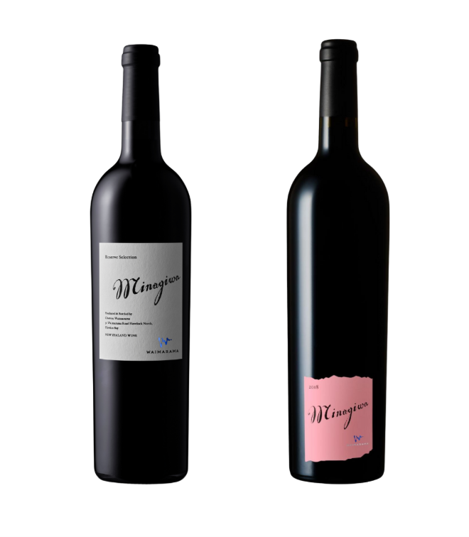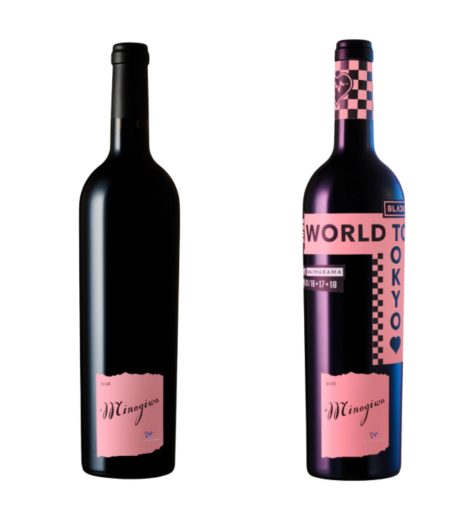 シャトー・ワイマラマ「Minagiwa」通常ボトル(左)と今回の限定ボトル(右)